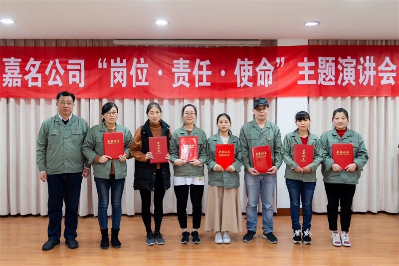 演講結(jié)束后,公司黨總支書記莫總講了話,他對各位演講者滿懷激情、積極向上的精神面貌表示肯定和贊許。他從演講中所贊揚的先進(jìn)人物,以及社會上的先進(jìn)模范進(jìn)一步對責(zé)任與使命進(jìn)行詮釋,并希望通過這次演講活動和學(xué)習(xí)先進(jìn)人物進(jìn)一步增強員工的責(zé)任感、使命感,更好地激發(fā)工作積極性、主動性和創(chuàng)造性,同時要求廣大員工深化“崗位·責(zé)任·使命”主題活動,積極開展提合理化建議和QC小組活動,發(fā)揮大家的智慧和力量,團結(jié)一心,共同努力實現(xiàn)嘉名的健康發(fā)展。