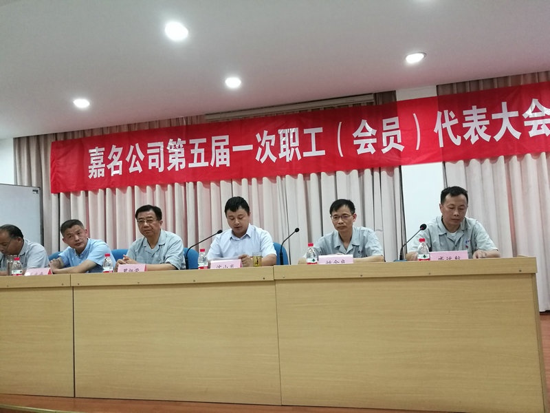 會(huì)議由公司人力資源部經(jīng)理戚遠(yuǎn)航主持。鳳鳴街道黨委副書(shū)記、總工會(huì)主席沈小炎首先講話,他對(duì)嘉名第五屆職工(會(huì)員)代表大會(huì)的召開(kāi)表示祝賀,同時(shí)肯定了近年來(lái)嘉名工會(huì)所做了工作和取得的成績(jī),對(duì)新一屆工會(huì)領(lǐng)導(dǎo)班子提出了三點(diǎn)希望:一是要牢牢把握“講政治”這一主旨,充分認(rèn)識(shí)新形勢(shì)下做好工會(huì)工作的重要性;二是要牢牢把握建功立業(yè)這一主線,圍繞企業(yè)生產(chǎn)發(fā)展貢獻(xiàn)力量;三是要牢牢把握民主建設(shè)這一主題,積極營(yíng)造公司和諧穩(wěn)定的發(fā)展環(huán)境。