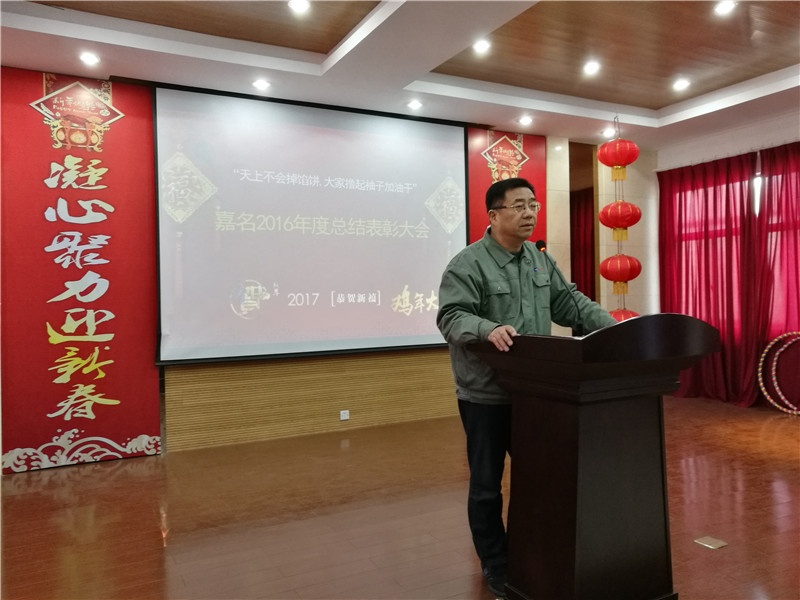 莫總強(qiáng)調(diào),2017年國內(nèi)外市場(chǎng)形勢(shì)仍然十分嚴(yán)峻復(fù)雜,不確定因素依然存在,同業(yè)競(jìng)爭(zhēng)會(huì)越來越激烈,客戶的要求和期望會(huì)越來越高。但是宏觀環(huán)境有利于嘉名的因素也很多,國家加大實(shí)體經(jīng)濟(jì)支持力度,加大供給側(cè)改革,加大環(huán)境治理,這些給我們嘉名將帶來更多的積極因素。我們有理由相信,2017年將是極不平凡的一年,只要我們堅(jiān)定信心,積極應(yīng)對(duì),齊心協(xié)力,奮力拼搏,必將會(huì)形成機(jī)遇大于挑戰(zhàn),優(yōu)勢(shì)大于劣勢(shì),動(dòng)力大于壓力,希望大于困難的良好局面。為此,我由衷地希望公司上下團(tuán)結(jié)一心,“大家擼起袖子加油干”, 苦干實(shí)干加巧干,不斷突破,不斷超越,為全面完成2017年的各項(xiàng)經(jīng)營目標(biāo)任務(wù),繼續(xù)走在行業(yè)前列作出共同努力!