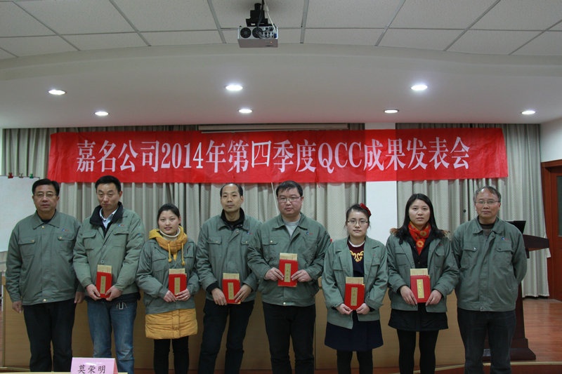 1月29日晚,公司召開了第六屆(2014年四季度)QCC成果發(fā)表會,染整事業(yè)部等6個部門66名員工參與的12項QCC成果會上發(fā)表。動力設備部的“坯布噴蒸汽機的自動化改造”,染整事業(yè)部的“降低成品布內(nèi)在指標的返修率”、“控制印花底布PH值的穩(wěn)定性”、“降低染化料成本”,經(jīng)編事業(yè)部的“提高90克絲光絨成品檢驗合格率”,紡織事業(yè)部的“減少坯布剪辦浪費”獲得優(yōu)秀獎。染整事業(yè)部的“改善毛圈布橫向彈性”,動力設備部的“定型機整緯改裝”,品質(zhì)管理部的“提高檢測中心測試進度”、“降低入倉錯誤率”,印花事業(yè)部的“提高分散印花漿料的穩(wěn)定性”、“提高印花打樣配方的準確性”獲得發(fā)表獎。這次發(fā)表的QCC成果共有QC小組活動。