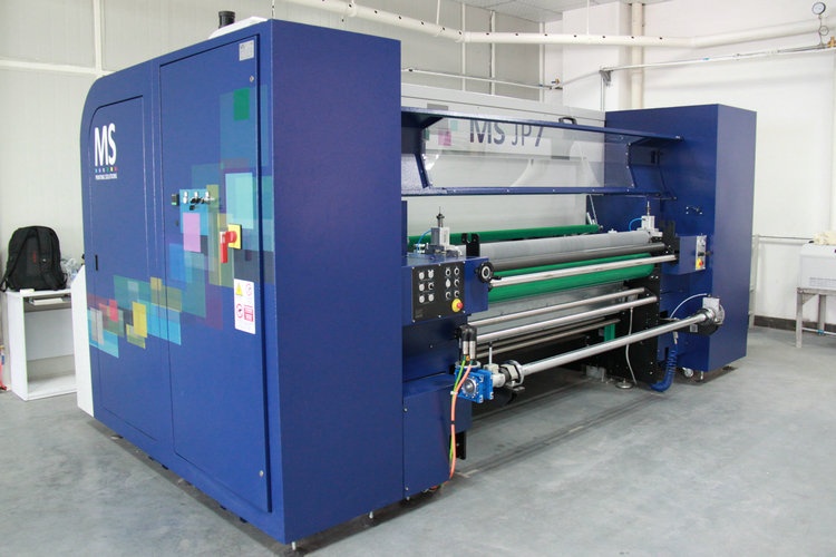 投入300多萬(wàn)元從意大利引進(jìn)的數(shù)碼印花機(jī)投入試生產(chǎn)