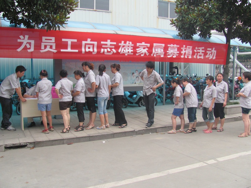 公司染整事業(yè)部員工向志雄于7月7日晨因突發(fā)疾病在居住地病故的不幸消息傳到公司,公司領導非常悲痛,馬上派部門領導赴醫(yī)院做好安撫家屬、喪事處理和善后工作。向志雄年僅32歲,家中有尚有妻子和幼兒,家庭生活陷入困境。對此,公司向其家屬給予了一定的慰問金,與此同時,公司黨支部、工會、團支部及時組織開展了為向志雄家屬募捐活動,號召黨團員和全體員工伸出援助之手,獻出一份愛心,積極為向志雄家屬捐款?;顒友杆俚玫搅巳w黨員和廣大員工的積極響應,紛紛解囊相助,短短一天多時間,共收到507名員工的29976元的捐款,其中染整事業(yè)部蔡小剛捐款3000元,捐款不論多少都體現了員工們的愛心。7月19日,公司將員工們的捐款送到了向志雄家屬手中,向志雄家屬對公司和員工們的誠摯關愛表示衷心感謝。
