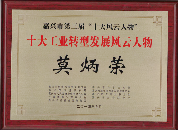 9月18日,在嘉興市第三屆“十大風(fēng)云人物”頒獎(jiǎng)典禮上,公司董事長(zhǎng)兼總經(jīng)理莫炳榮同時(shí)榮獲“嘉興市十大工業(yè)轉(zhuǎn)型發(fā)展風(fēng)云人物”、“嘉興市十大環(huán)保風(fēng)云人物”榮譽(yù)稱號(hào)。